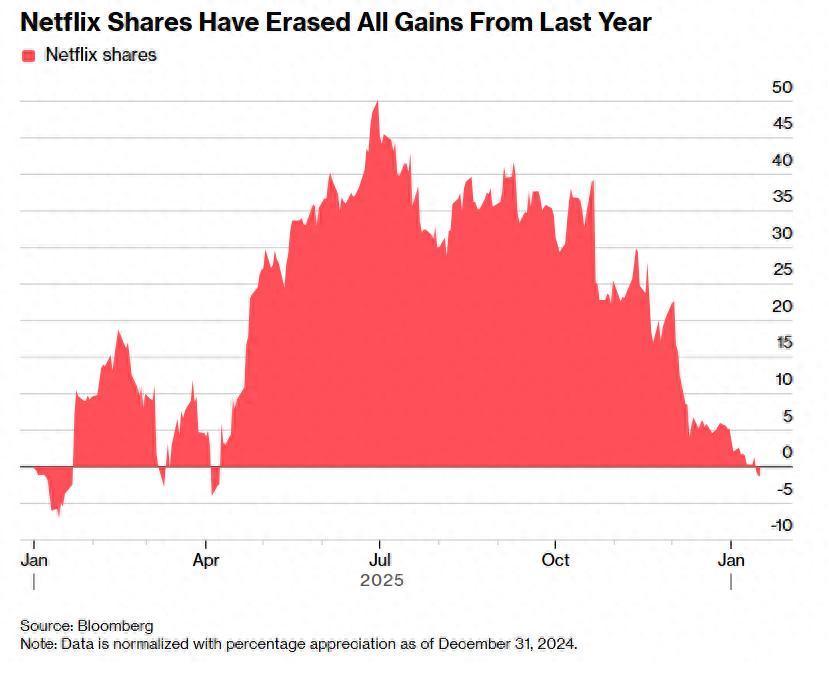 当时,奈飞被视为可能收购华纳兄弟的潜在重大买家。现在,随着827亿美元的全现金收购交易提上桌面,一些投资者愈发感到不安,所有风险都被放大。然而,也有一些投资者认为这次持续抛售是一个重要的逢低买入机遇。
