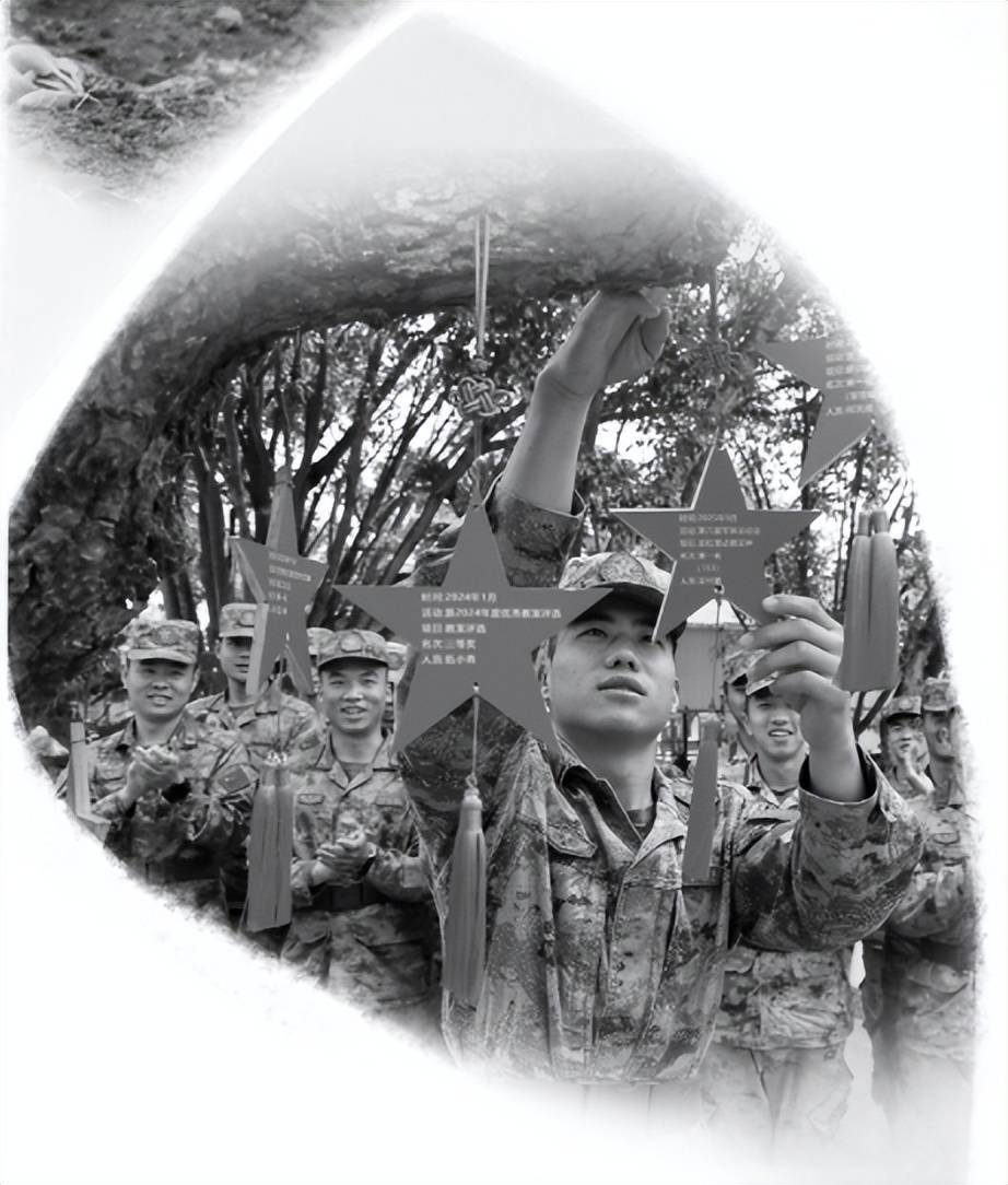2023年,时任指导员注意到火焰树呈“V”字形分叉生长。“V”代表胜利,为激发官兵训练热情,他决定凡有立功受奖、获评先进、在重大任务中表现突出者,都要在火焰树前举行一次颁奖仪式,将写有荣誉事迹的五角星木牌挂上枝头,这棵火焰树由此成为连队的荣誉树。