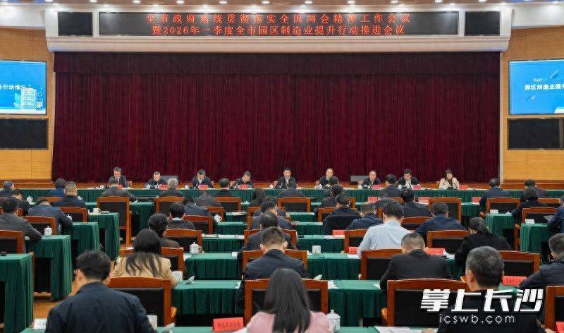 长沙晚报掌上长沙3月25日讯(全媒体记者 唐朝昭)25日,全市政府系统贯彻落实全国两会精神工作会议暨2026年一季度全市园区制造业提升行动推进会议举行,市委副书记、市长陈博彰出席。他强调,要深入学习贯彻习近平总书记在全国两会期间的重要讲话和全国两会精神,认真落实省委、省政府和市委工作要求,抓紧抓实“三个一”服务活动、园区制造业提升行动、“人工智能+”行动等重点任务,确保一季度“开门稳”,为“十五五”开好局起好步打下坚实基础。市级领导周健、邹特参加。