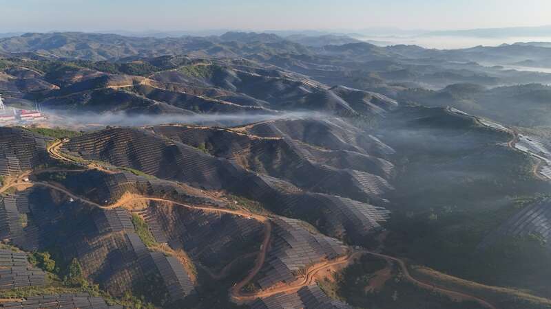 该项目位于老挝乌多姆赛省孟赛县和那磨县,是中广核首个自主策划、自主开发的境外百万千瓦级清洁能源绿地项目,也是老挝首个大型山地光伏项目。建设过程中,中广核推动成立了老挝首个聚焦电源标准研究的机构——老挝清洁能源电源标准研究院,以规则标准“软联通”助力中老电力合作提质升级。生态保护方面,项目通过精准勘测、优化阵列布局、施工避让与生态修复等措施,守护原生生态环境,各项“花园式”电厂的良好实践被老挝政府授予“绿色能量质量认证”。